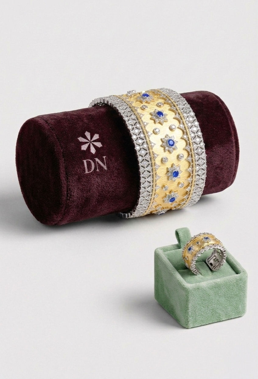 طقم فخم اسوارة عريضة +خاتم أزرق كحلي ذهبي